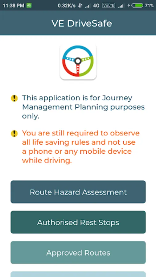The VE DriveSafe App maps out the approved routes that drivers are advised to use from start point to destination.