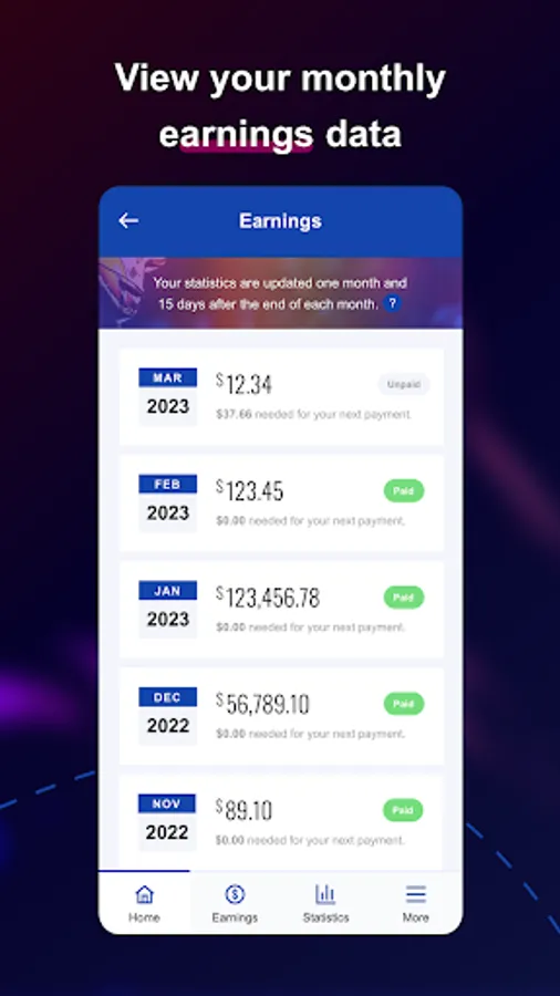 •View your earnings