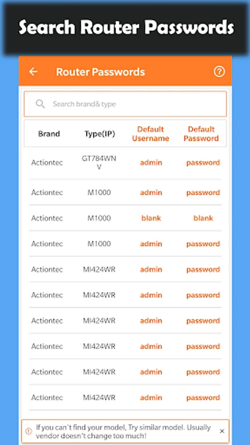 WiFi Router Passwords - WiFi Router Admin Setup helps you easily Find default WiFi Router passwords.