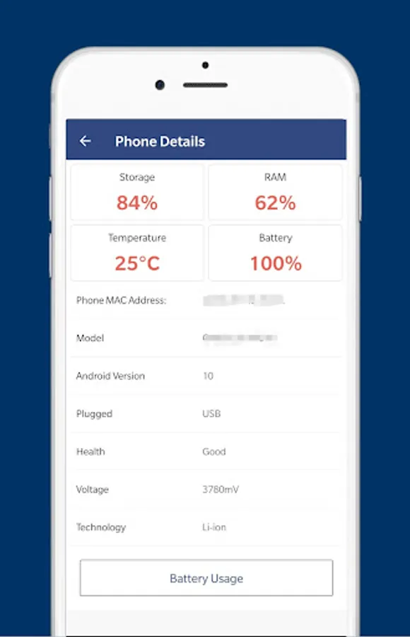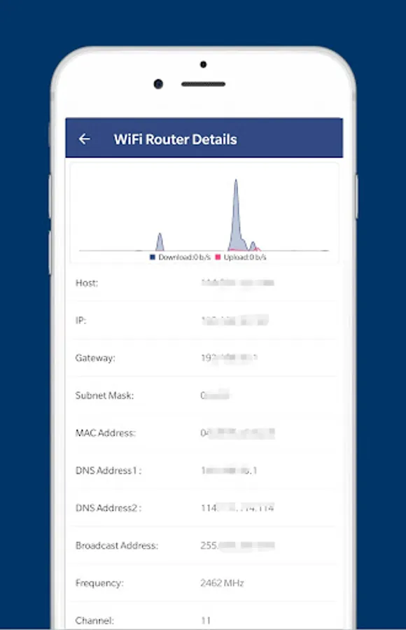 Using the app, you can get some information about your WiFi router and your phone details such as IP, MAC address, phone storage and battery information etc.