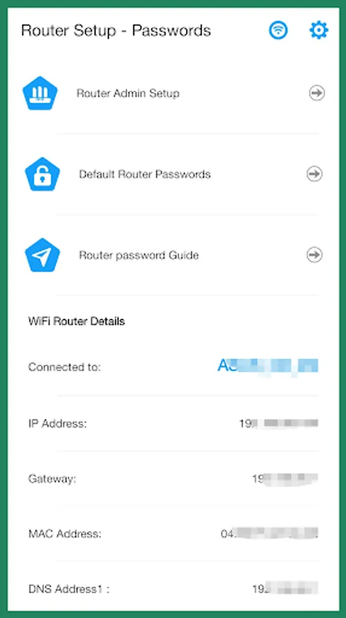 Or you can use the app to check my wifi router details. Router Setup Page - Router Password app allows you to view your WiFi Router Settings and information about your network.
