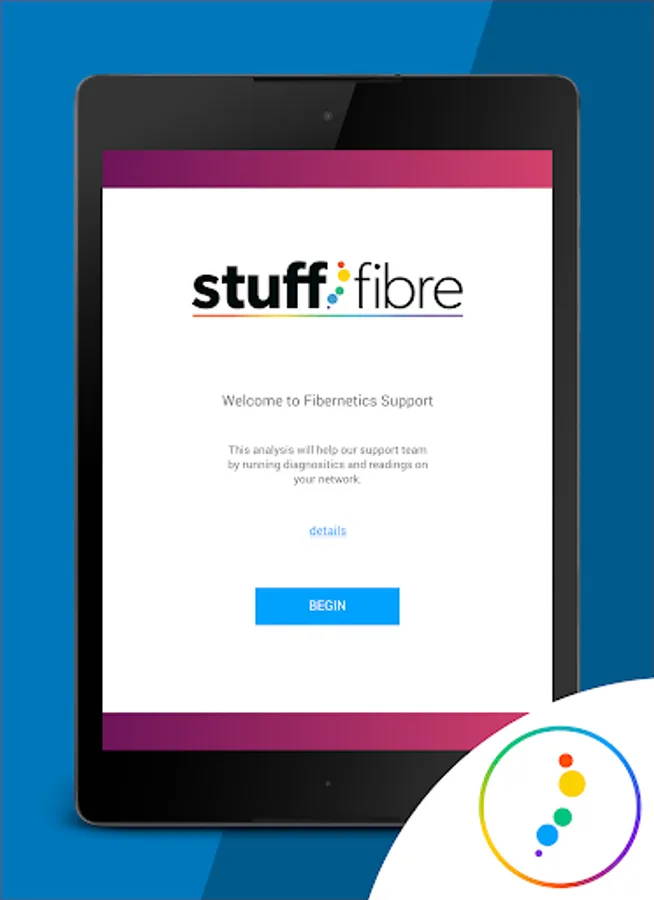 Stuff Fibre Diagnostics runs a variety of network tests and diagnostics and allows you to share them with the support representative who's working hard to solve your problem. This information will help them to solve your issue quickly so you can go back to enjoying your Internet package to the fullest!