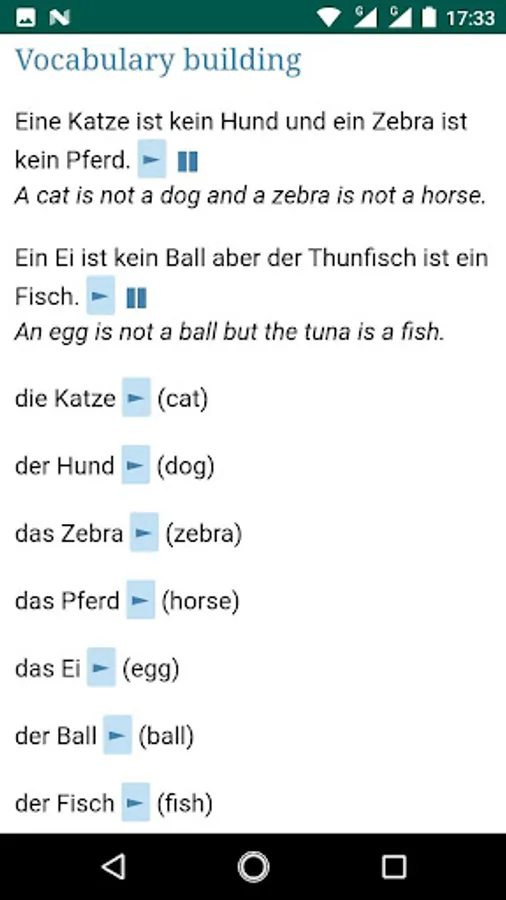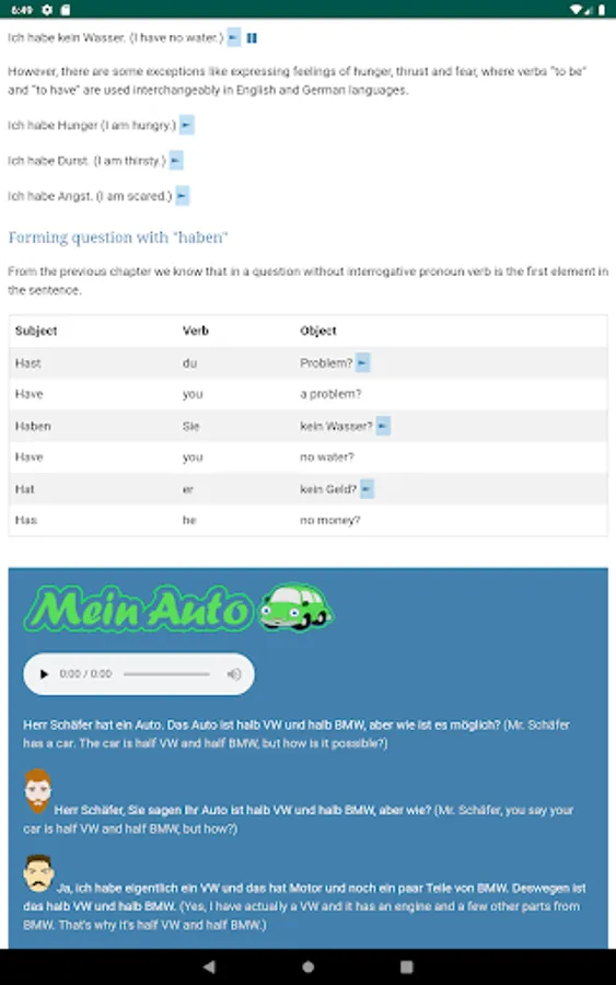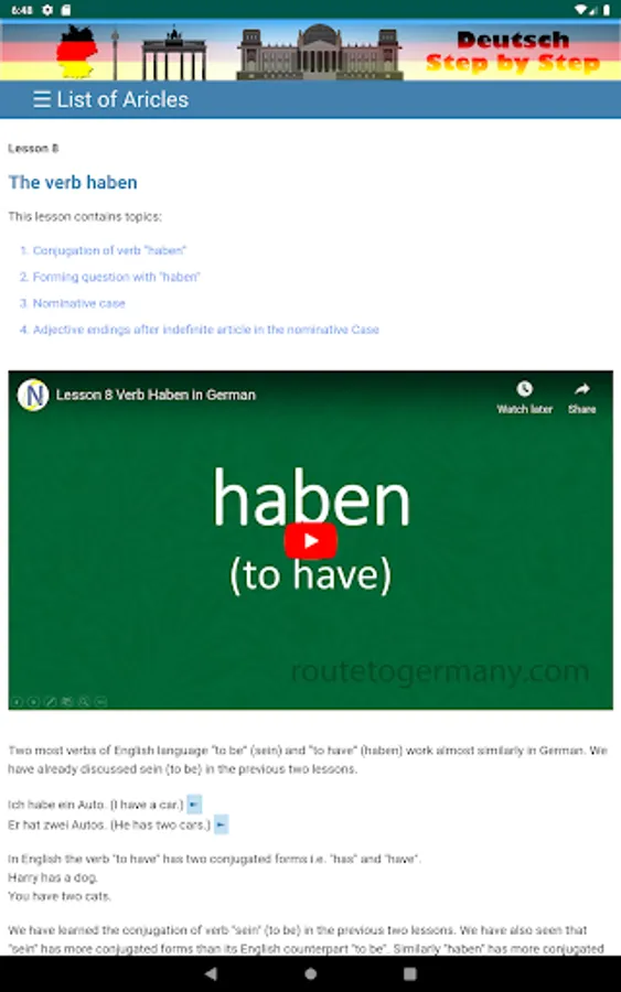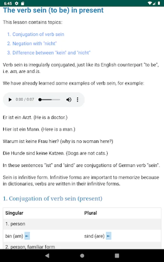 Learn German vocabulary and grammar of A1 level with audio and video support.