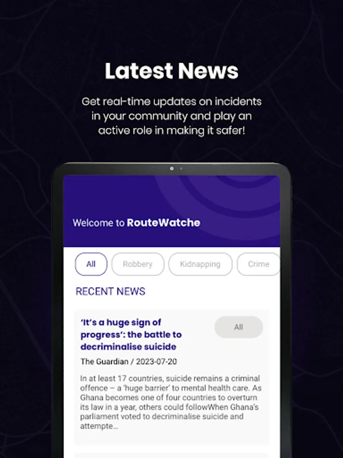 RouteWatche is a news application that shows news related to Nigeria. You can also sign up to become a RouteWatcher to report incidents in your area and view events submitted by other RouteWatchers.