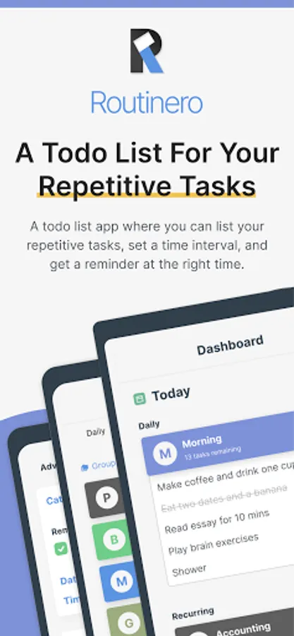 Routinero is a to-do list app where you can list your repetitive tasks,📄 set a time interval, ⏰ and get a reminder at the right time.🔔