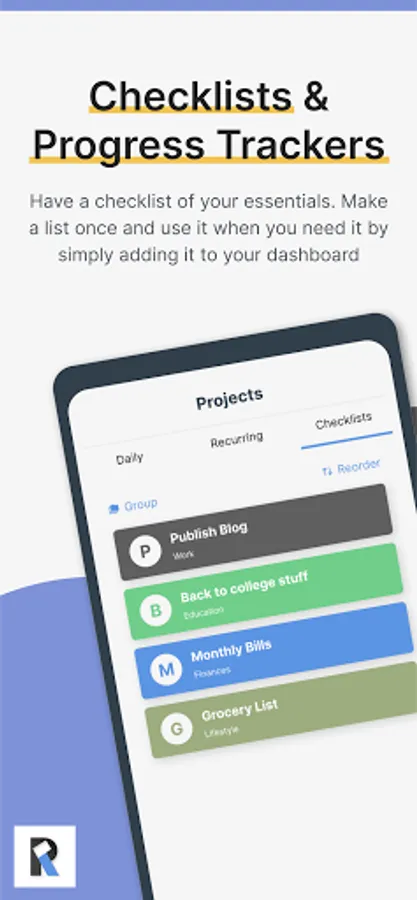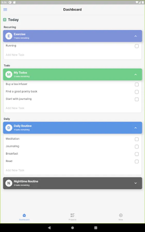 Create to-do lists of habits with daily reset. Track them with daily streaks, and view the history.