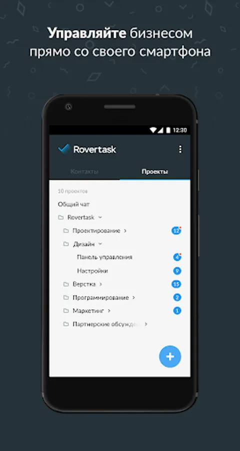 Rovertask - a new era of business management. This application will help managers and employees to organize a clear planning and project management, build teamwork and personal affairs.