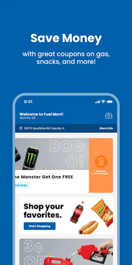 Save money at Fuel Mart stores with great coupons on gas, snacks, and more! Simply tap the orange redeem button and show your phone at purchase to redeem your coupons.