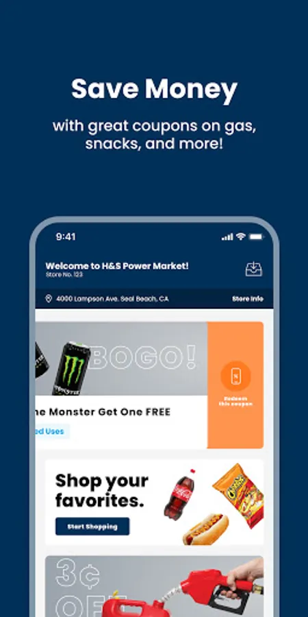 Save money at H&S Power Market stores with great coupons on gas, snacks, and more! Simply tap the orange redeem button and show your phone at purchase to redeem your coupons.