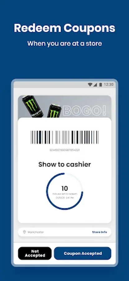 Simply tap the orange redeem button and show your phone at purchase to redeem your coupons.