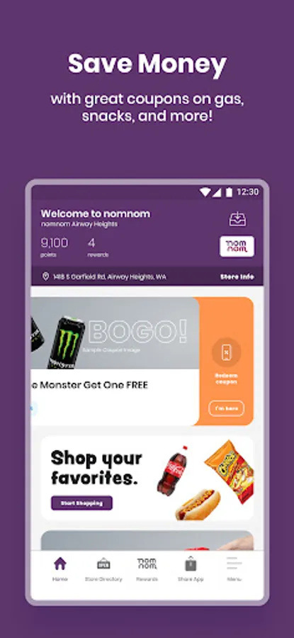 Save money at nomnom stores with great coupons on gas, snacks, and more! Simply tap the orange redeem button and show your phone at purchase to redeem your coupons.