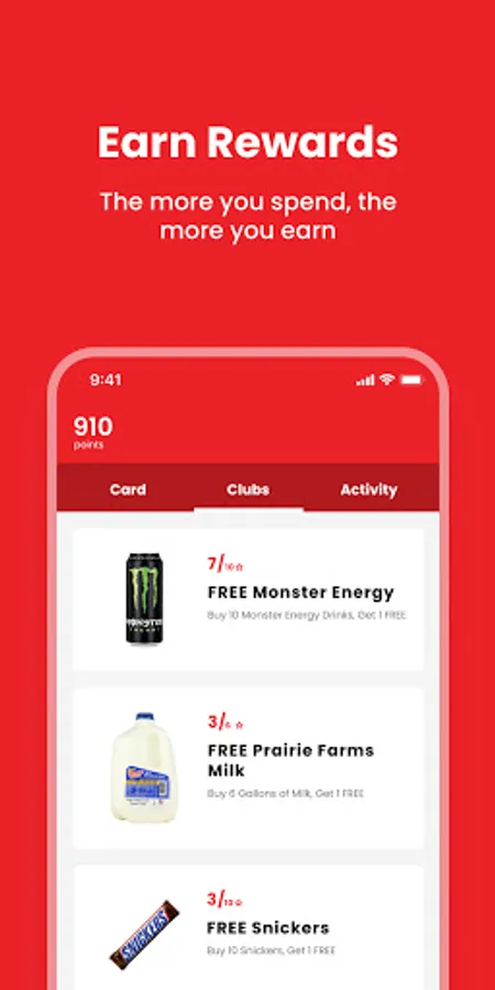 *Note that customers can earn but not redeem OnCue Rewards with Kickback Points through a mobile device at this time. Club programs and product offers can be redeemed through the app rewards page, but only a physical OnCue Rewards with Kickback card can be used to redeem points.