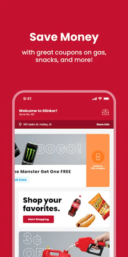 Save money at Stinker Stores with great coupons on gas, snacks, and more! Simply tap the orange redeem button and show your phone at purchase to redeem your coupons.
