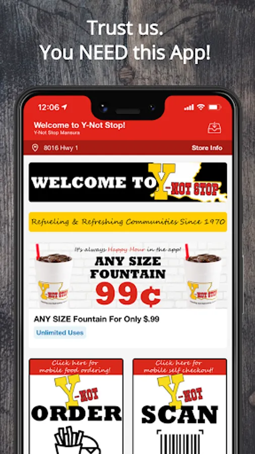 Save money at Y-Not Stop stores with great coupons on gas, snacks, and more! Simply tap the orange redeem button and show your phone at purchase to redeem your coupons.
