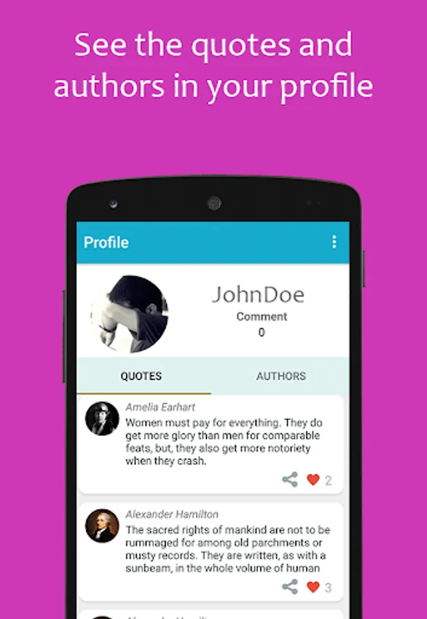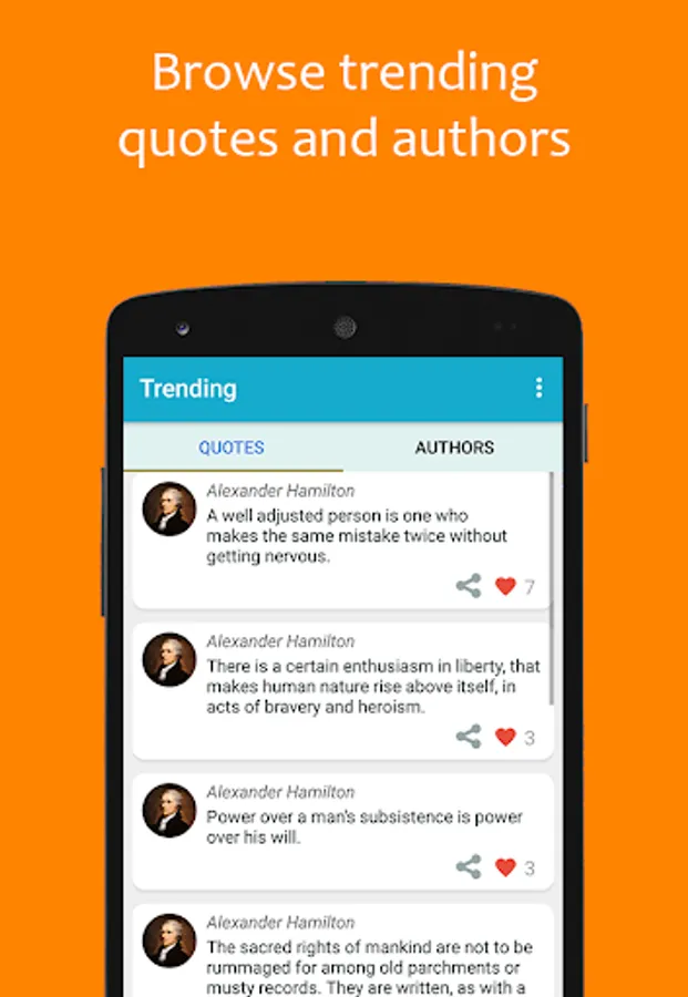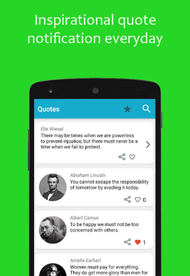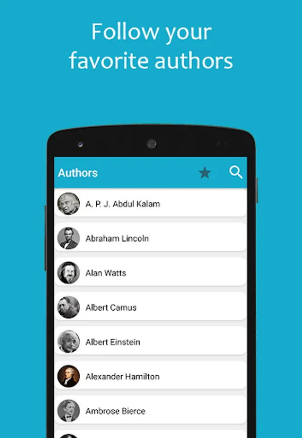 - Add authors and quotes to your favorites and take a glance at them whenever you want.