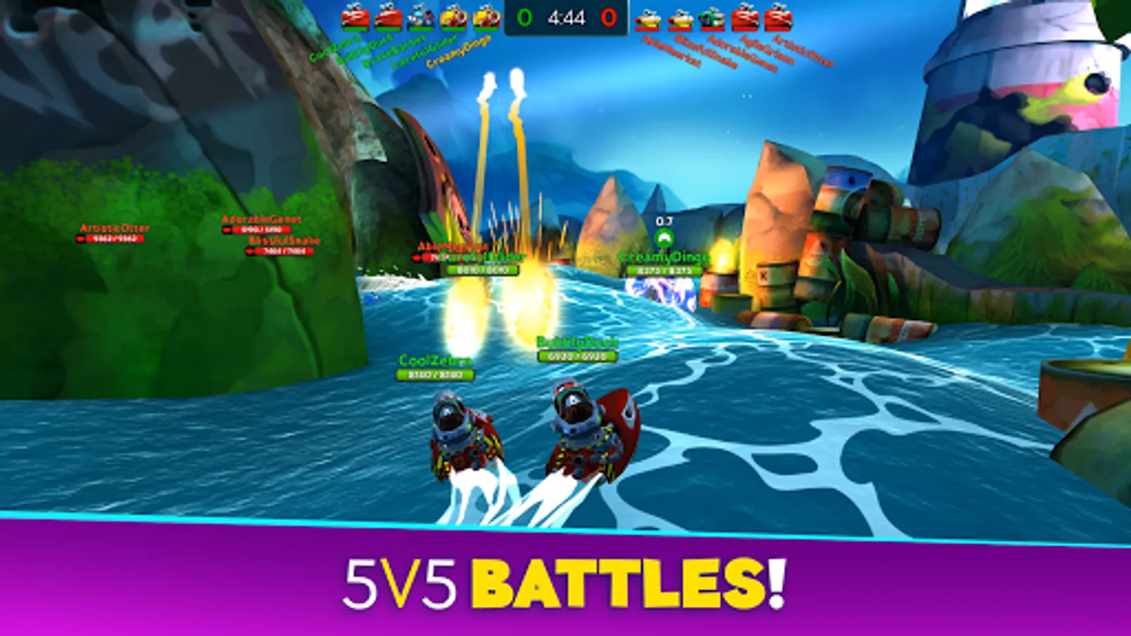 Choose a ship, select your weapons and go to battle against opponents around the world. Use team strategy and firepower to take your fleet to the top - it’s sink or win!