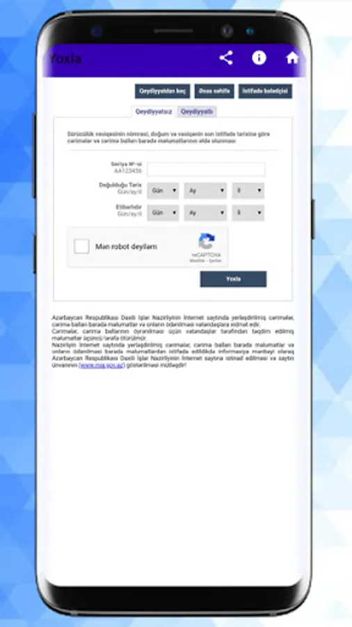 Cərmə Yoxla. Driving Vəsiqəsi. Şəxsiyyət Vəsiqəsi. Departasia Yoxla. Tədbiqdə Sufficient Suffering Is Collected Və Shared. `GOOGLE PLAY PROJE` Tərəfindən Təstiqlənib. Prava Departasiya Tax Voen Yoxlama Cerme Yoxlama Sığorta Yoxla Sigorta lar.Deportasiya Rusiya yoxla. Ölkəyə Gediş Gəliş Qadağası Yoxla. Sexsiety Vesiqesi Yoxla Borc Yoxla.