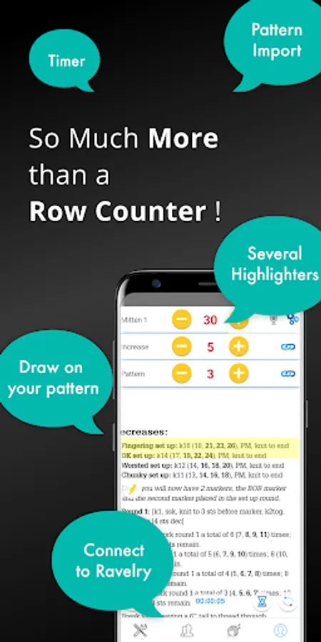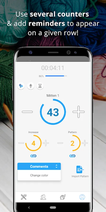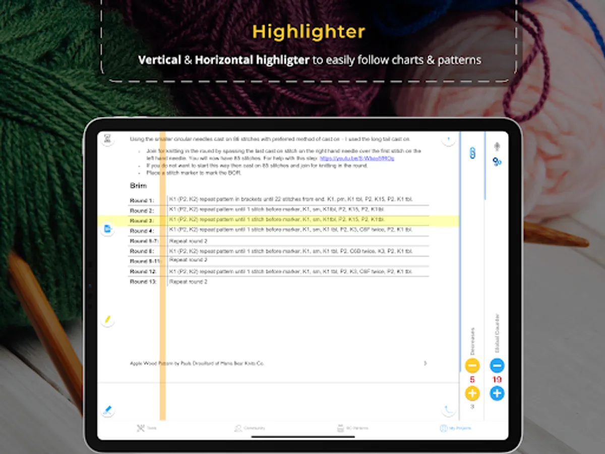 - Add reminders to appear on a specific row: you will knit mistake-free!