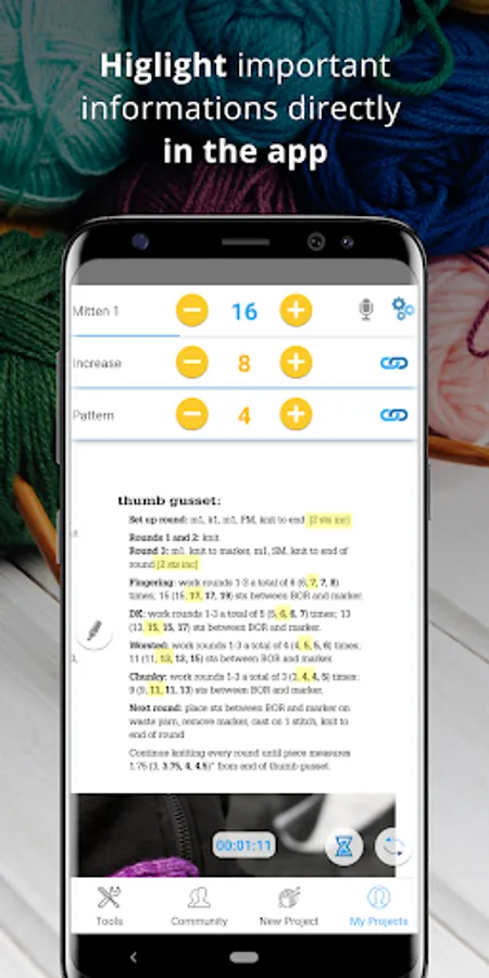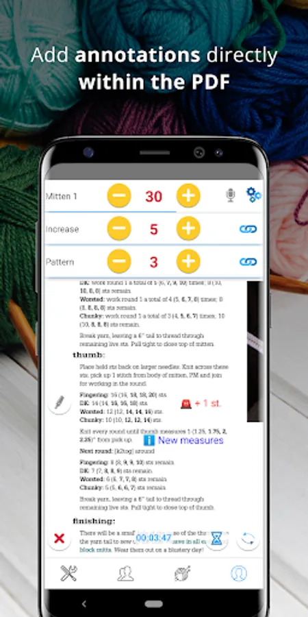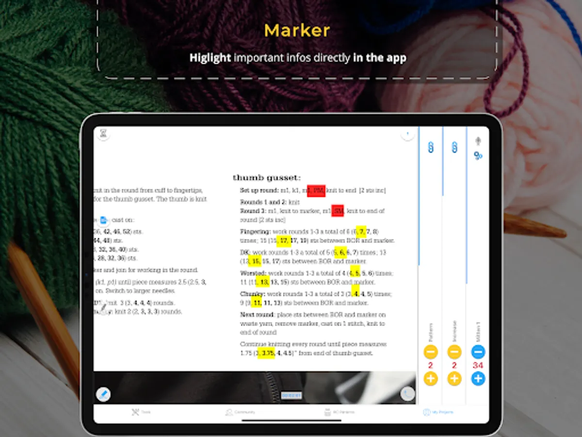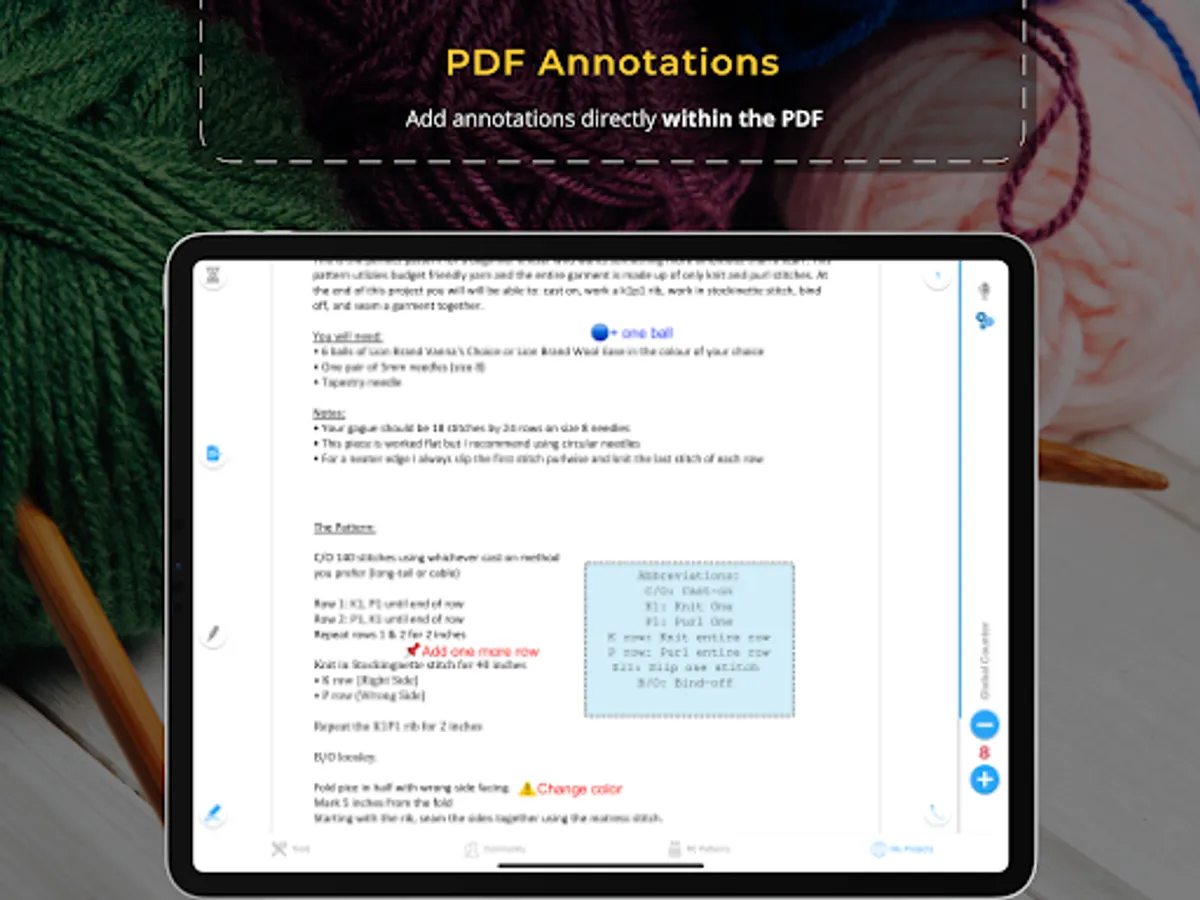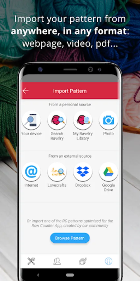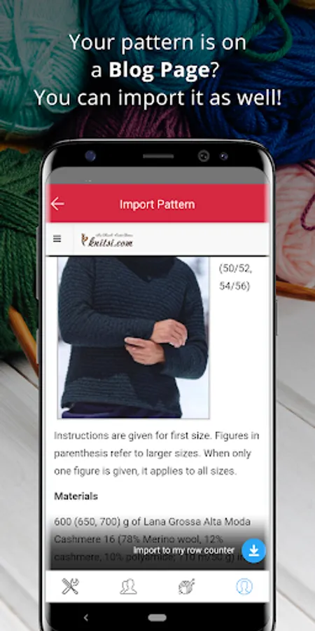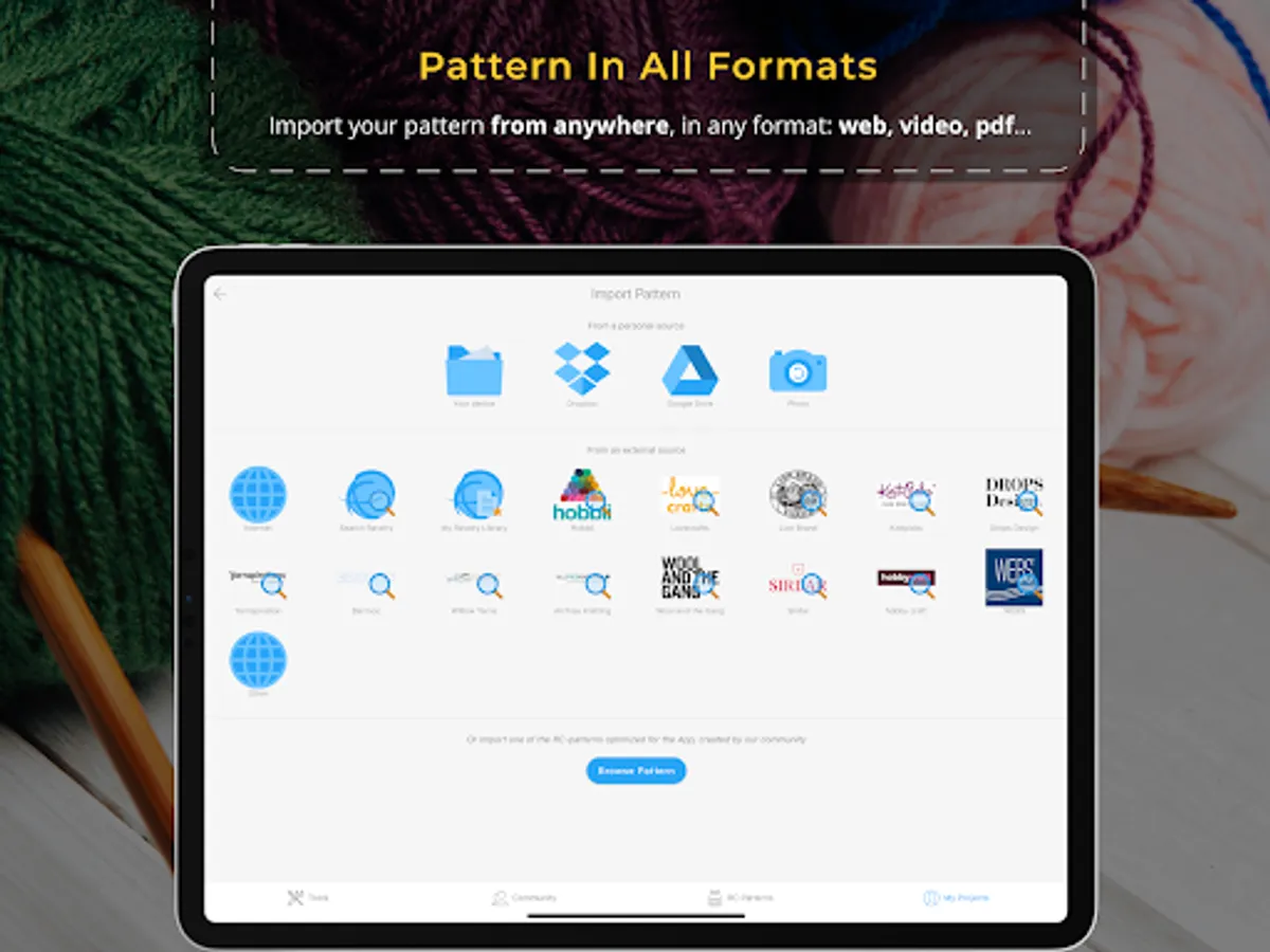 - Download your patterns directly into the app, be it a webpage, a video or a pdf.