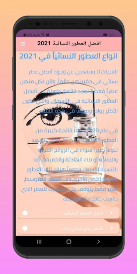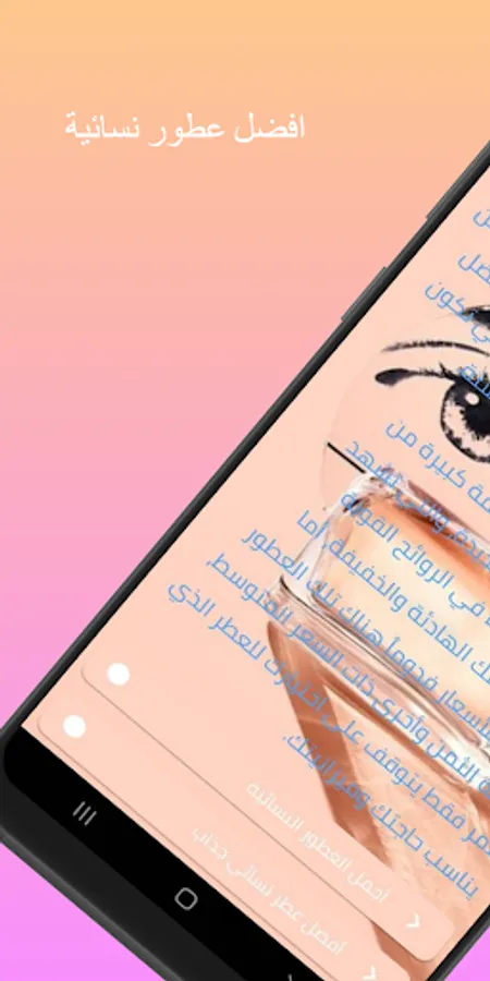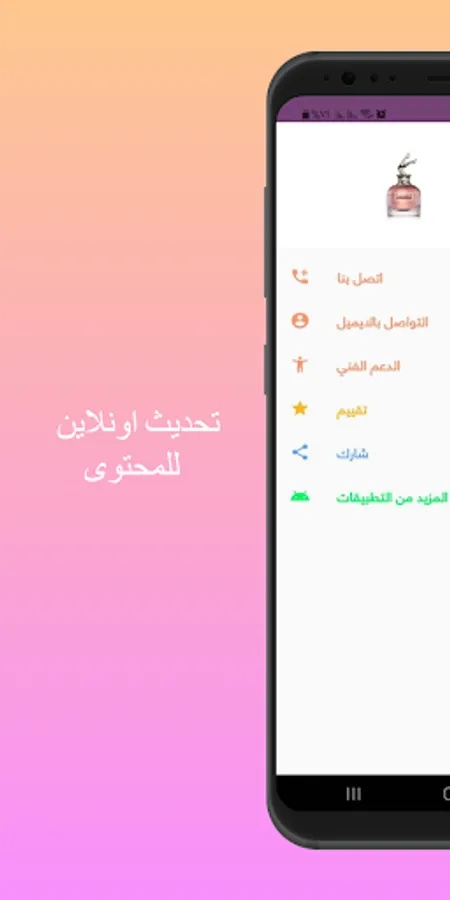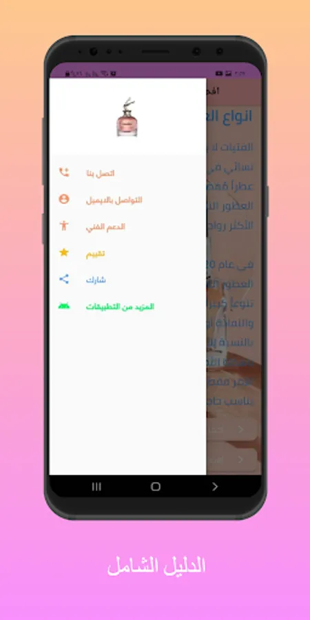 Many educational lessons for children and adults are included in the application of women's perfumes, which we have provided for you to suit all what you require and what you need. The application includes exciting women's perfumes and everything that is educational about the most popular types of perfumes in the Arab world, as well as for all that is educational, types of old and modern perfumes and their smell The powerful and famous, as we were keen in the application of women's perfumes to design it in the way that everyone desires with all professionalism, high quality, simplicity and ease of use.