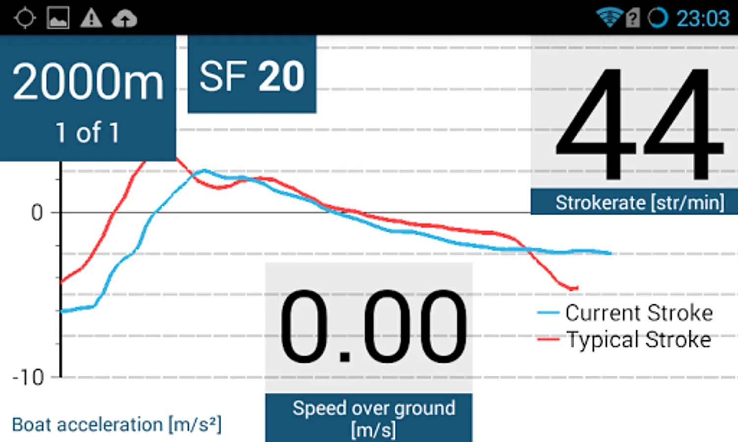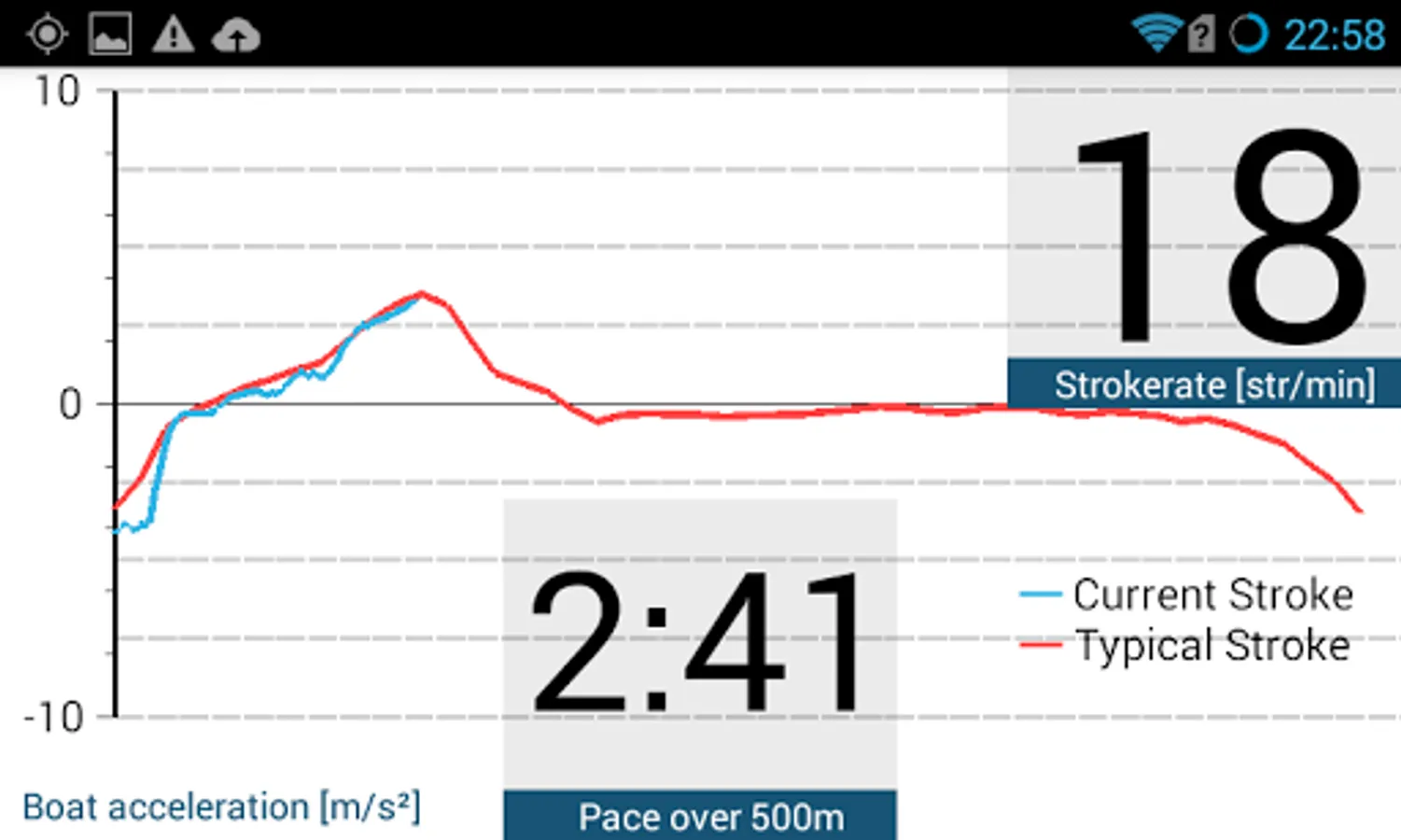 * Full Screen Graphs: Showing your boat acceleration compared to an average of the previous strokes