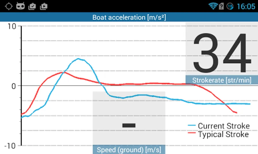 * Full Screen Graphs: Showing your boat acceleration compared to an average of the previous strokes