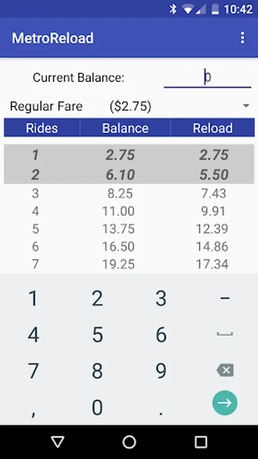 When using the app, enter the current balance, if any, on the card and select the Fare type.