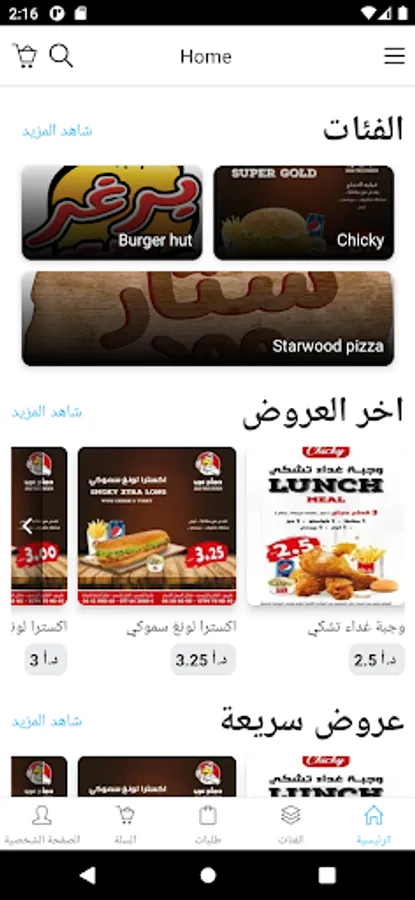 تطبيق يحتوي على مجموعة مطاعم لشركة العون
