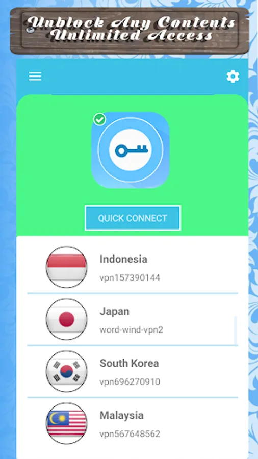 * This application uses a free server, some servers may not work properly, but there are still many server (100+ server) options that work very well that you can use.