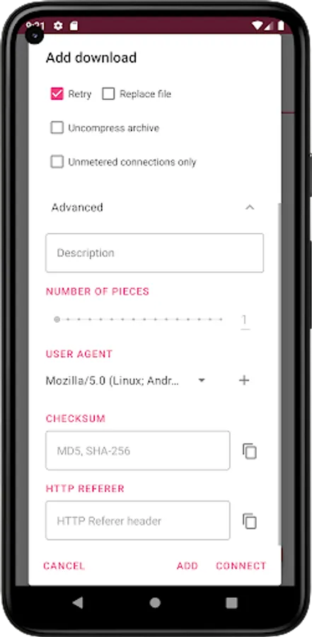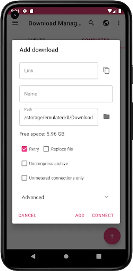 π Unmetered connections only support: You can choose to download files only when you are connected to Wi-Fi or other unlimited data sources, to save your mobile data.