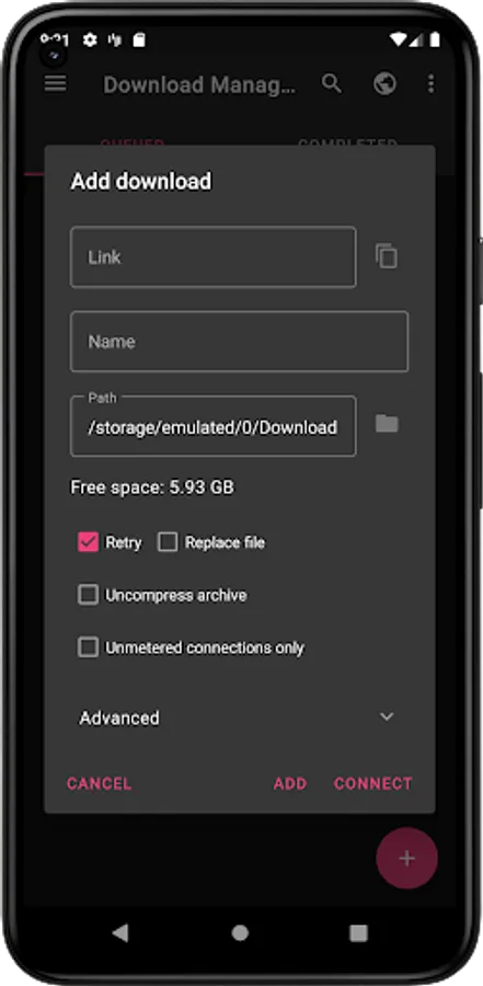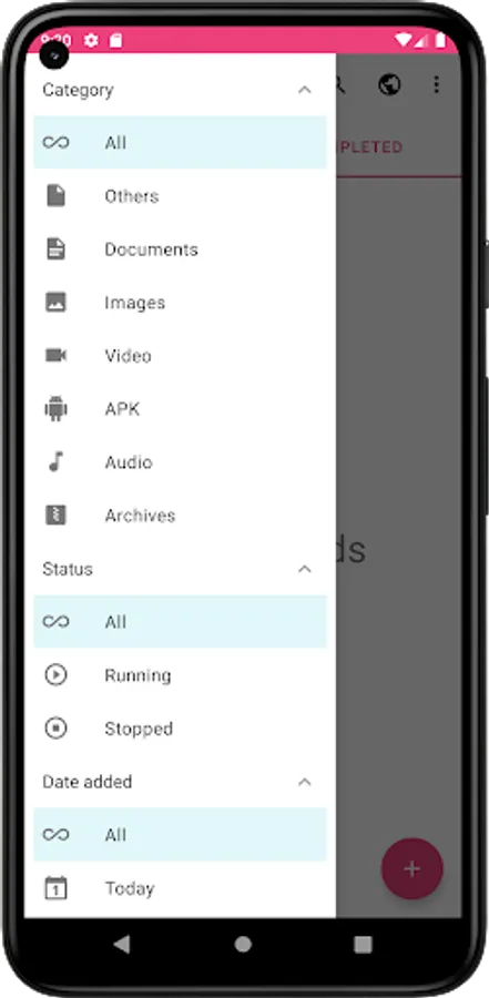 π Various automatic actions after finishing download: You can choose what to do with your downloaded files after they are completed, such as open them, share them, delete them, or move them to a different folder.