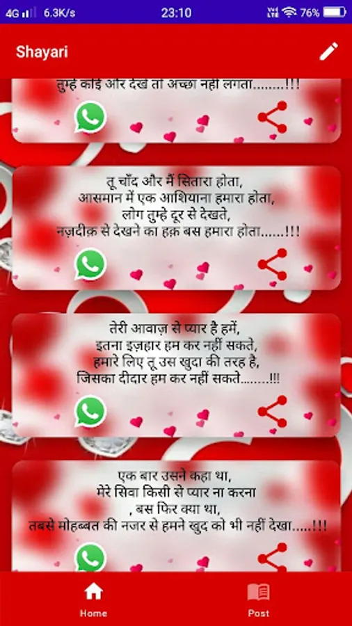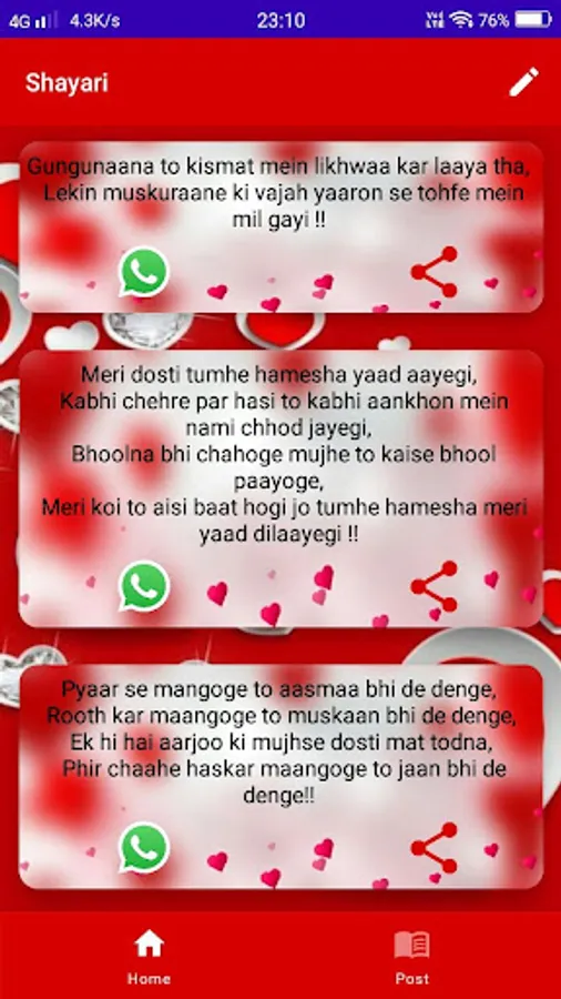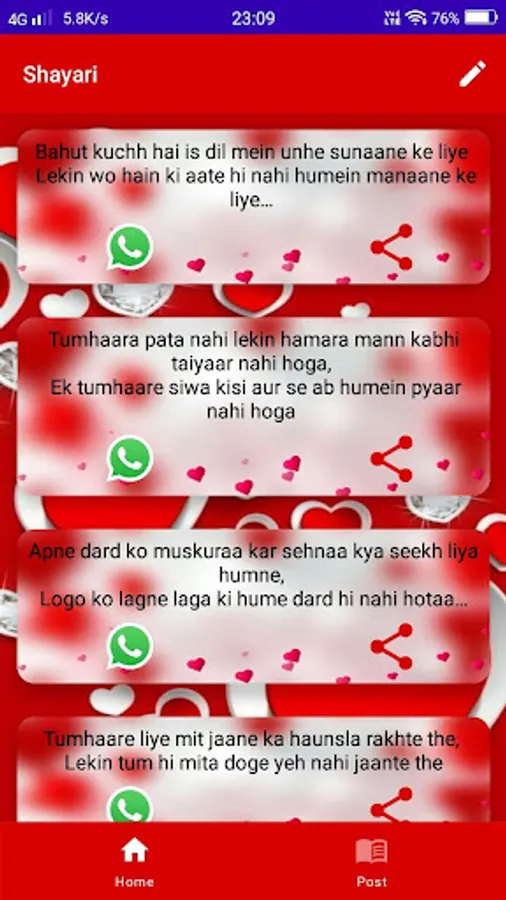 This is one of the best collections of the latest love Shayari. This app is totally free and has to be needed for an internet connection. Love is one of the important parts of human life for sharing feelings to some we must need a proper text which is attached by our emotion for that this is the best app for you. Just use and share ultimate feelings.