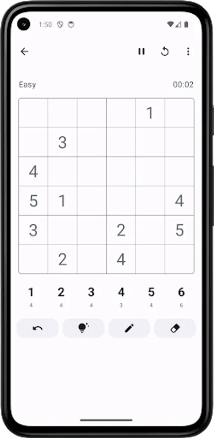 🤗 6x6, 9x9, and 12x12 sudoku boards with 4 difficulty levels: Easy, Medium, Hard, and Expert. You can choose the board size and level that suits your skill and mood.