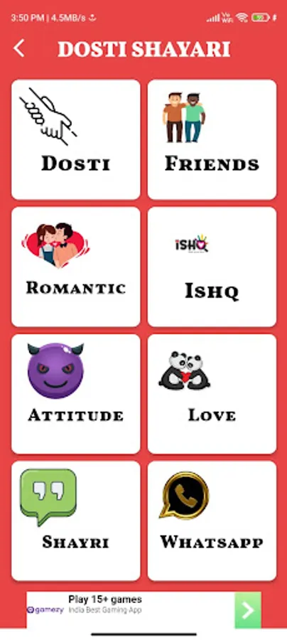 This Dosti and friendship Shayari app is a amazing and great Shayari application having lot of Shayari messages for you with offline to use.also categories as well dosti, veer shayari, hindi friendship shayari,