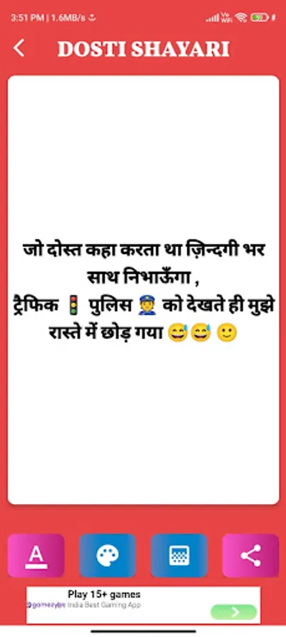 This app is for Specially दोस्ती शायरी - Dosti Shayari on every Best in class categories. Special Shayari for