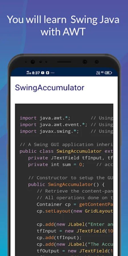 Java Swing is a lightweight Graphical User Interface (GUI) toolkit that includes a rich set of widgets. It includes package lets you make GUI components for your Java applications, and It is platform independent.