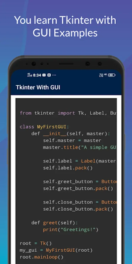 Tkinter is the standard GUI library for Python. Python when combined with Tkinter provides a fast and easy way to create GUI applications. Tkinter provides a powerful object-oriented interface to the Tk GUI toolkit.