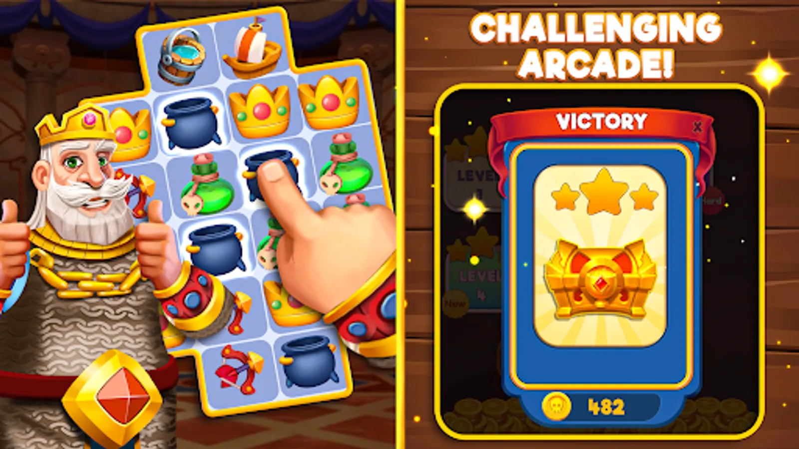 A perfect royal themed and style classic matching game for all connect tile match games lovers.