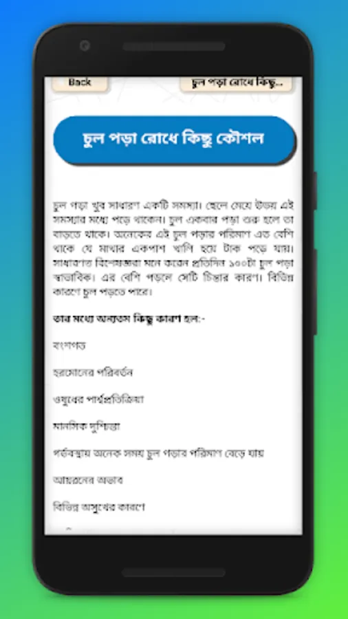 Hair loss is a very serious problem for both men and women. It is very important to solve the problem of excessive hair loss and understanding the difference between hair loss and new hair growth. The boys' hair fell out and their heads became bald. Hair falls not only on boys but also on girls. In this way the hair of the head becomes thin and the beauty is ruined. Hair can also fall out due to carelessness or dandruff due to carelessness. Premature hair ripens or turns white. This is an embarrassing situation for many to read. Our hair care app has tips to thicken and blacken hair and hair color tips to blacken mature hair without color. There are also descriptions of home remedies for hair loss treatment, including ways to stop hair loss and grow new hair.