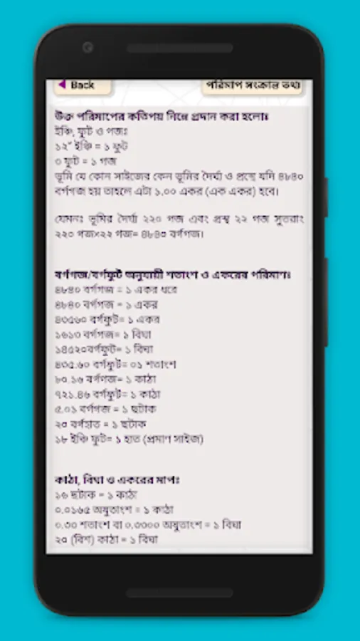 With this jomi porimap calculator you can easily understand the size of the land, information and laws. Here are the sources of change in different units. So you will get a good idea about design and land. Moreover, through this Jomi porimap calculator you can see 'Land Khatian' through Khatian Online. With this vumi jorip calculator you can easily learn all about land and registry services and laws, land law, land service etc. We can learn about the measurement method of any land in Bangladesh, from our vumir porimap calculator app.