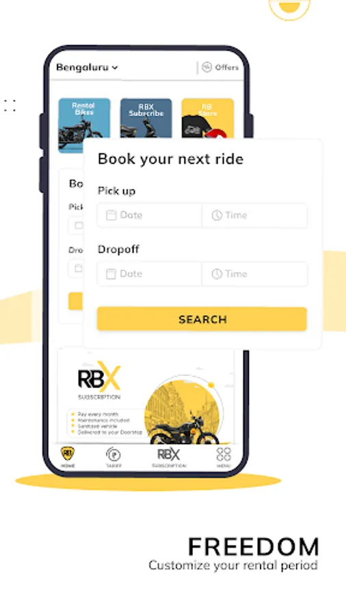 Not just scooters or electric vehicles, we have something for everyone, ranging from a TVS XL to a BMW. Users can make a booking online, through our app and go to our locations spread across the city. Our latest model RBX allows you to subscribe to a vehicle for upto 36 months. A hassle free mode of transportation, now easily available through online monthly subscription mode.