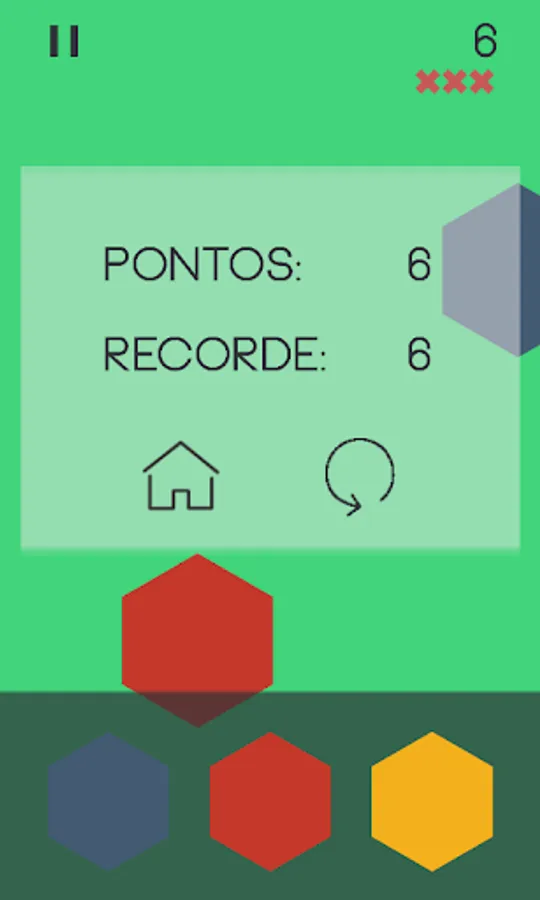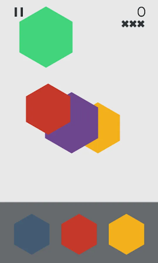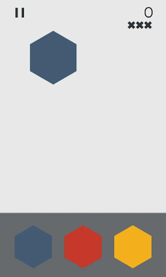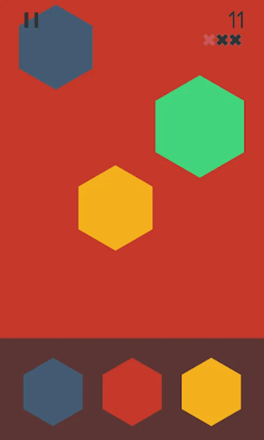 The player aims to color the background as the hexagon is about to touch one of the screen edges. The fund may be colored by touching the (s) color (s) desired (s). Hexagons that arise are of primary colors, but when you play, the primary color hexagons come together and form a color hexagon made. Some hexagons are born on the screen and do not move, while others are always in linear motion. If it fails, the player gets a reduction in their number of attempts. If it matches, the player making the cube disappear and earn points. To fail for certain times, the player loses. Attempts to recover, the player must eliminate diversified hexagons. In the game over screen is displayed the final score of the player and his personal record, which is compared to all other players.