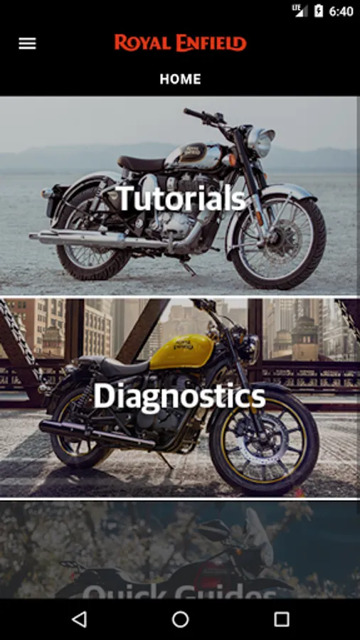 This app has been specifically designed for its service partners by Royal Enfield. It offers a simpler and more effective way to solve problems with the motorcycles. Plug the wireless device into the diagnostic port of the motorcycle, log in to the app, search for the motorcycle and pair it with the wireless device to sync data between the two. Once connected, the app automatically presents the issues along with steps to help you resolve them.