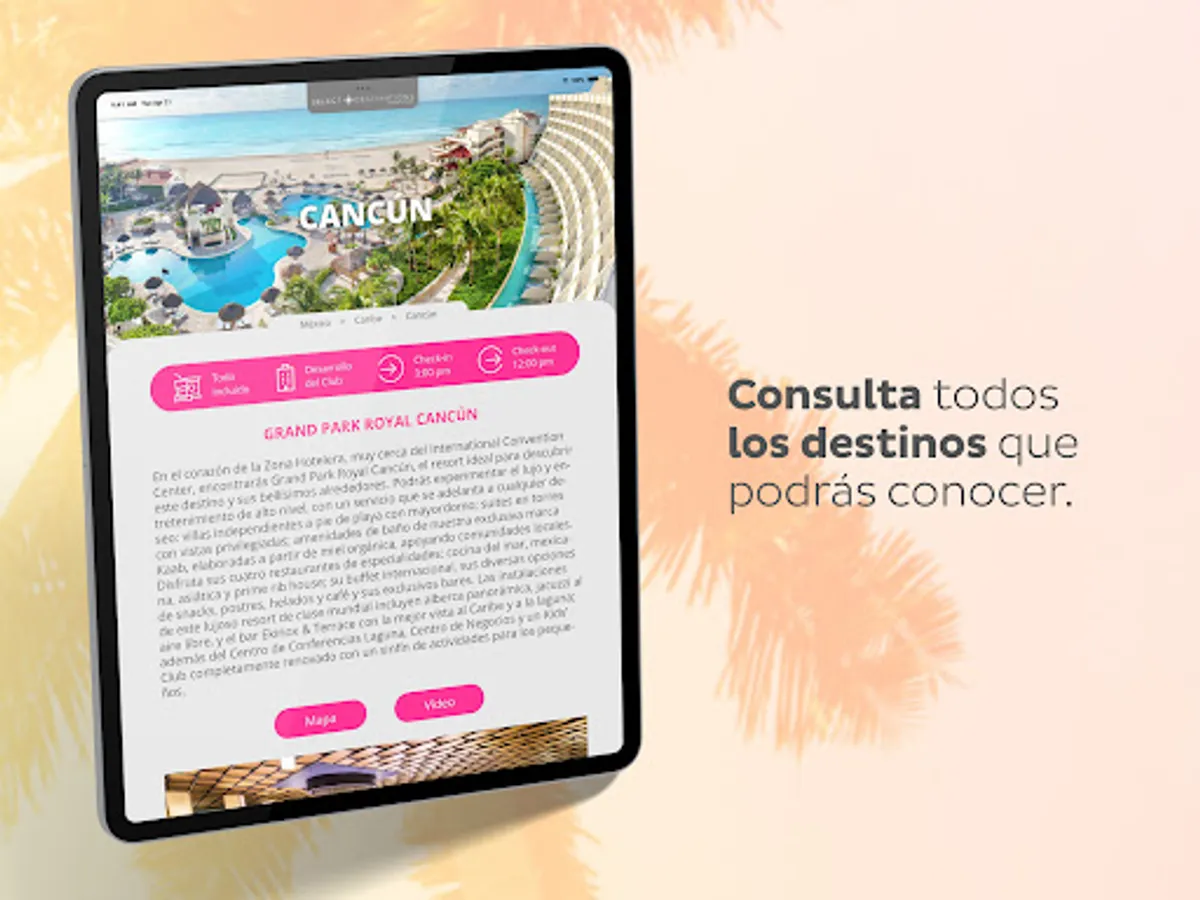 Your travel experience is about to begin, in this application you will find your Development Guide that is now digital, in which you can view videos and interactive galleries of each of the destinations to which you can travel with your membership, you will also find information important information about rooms, services and activities present in each of the developments.