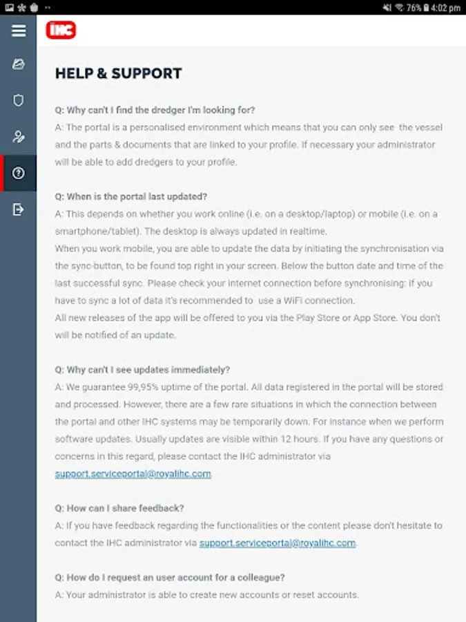 If you want to know more about the Service Portal, and whether your organisation can also make use of it, please contact your Royal IHC contact person or send a mail to support.serviceportal@Royalihc.com.