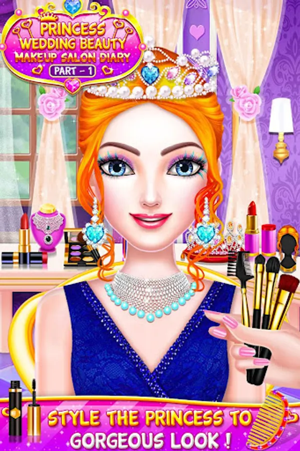 1. Play makeover with 8 style magic princess wedding makeup salon!