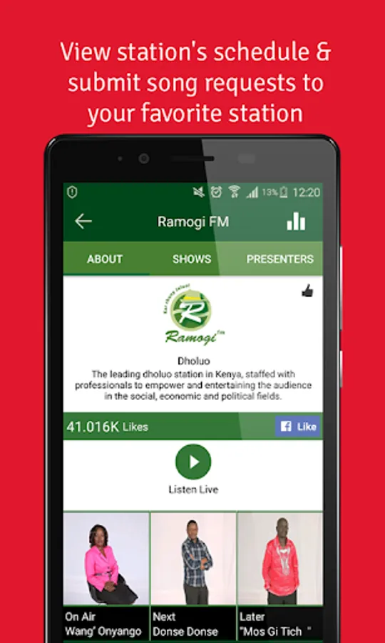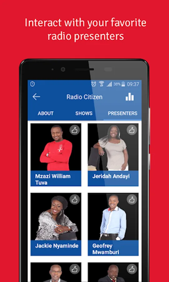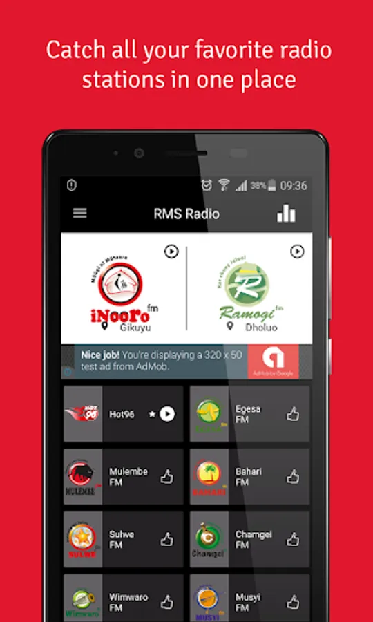 With RMS Radio app, you can listen to Radio Citizen, Hot 96 FM, Ramogi FM, Inooro FM, Egesa FM, Mulembe FM, Bahari FM, Sulwe FM, Chamgei FM, Wimwaro FM, Musyi FM, Muuga FM and Vuuka FM.