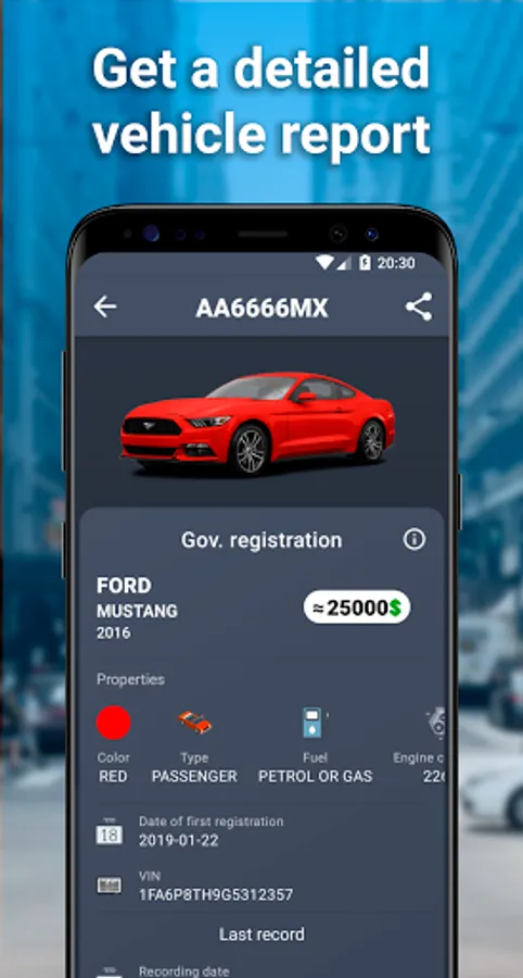Using the search by plate number you get complete information about the car