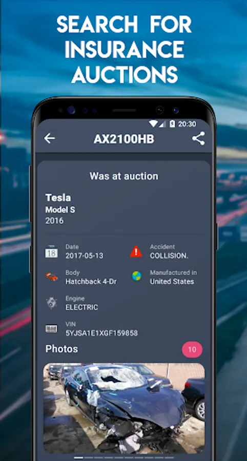 15. Checking the car at auction, a full report with the date, breakdown of the car and his photo in USA auction
