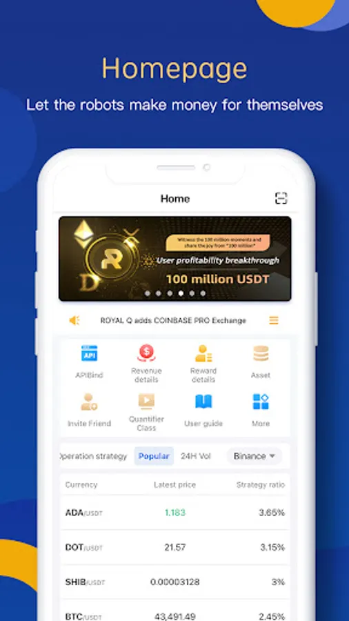 Royal Q intelligent quantitative system, the full English name of Royal Quantitative, is a system that focuses on artificial intelligence quantitative trading. 4 years of digital currency trading system quantitative strategy development experience, has successively built quantitative systems for many international private equity funds, and perfect investment quantitative strategy models , To maximize the utilization of member funds, and to help members maximize their profits through quantitative transactions in the digital currency market.